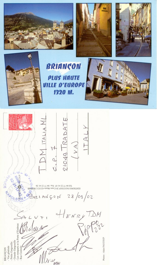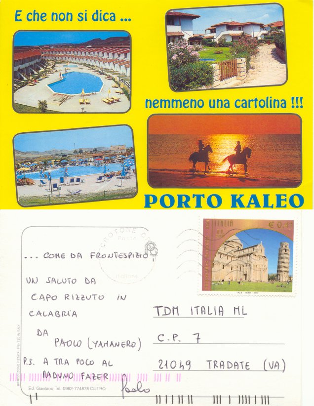 In questa sezione sono pubblicate le cartoline inviate dai TDMisti della Mailing List a ricordo dei loro viaggi in sella alla loro amata TDM.