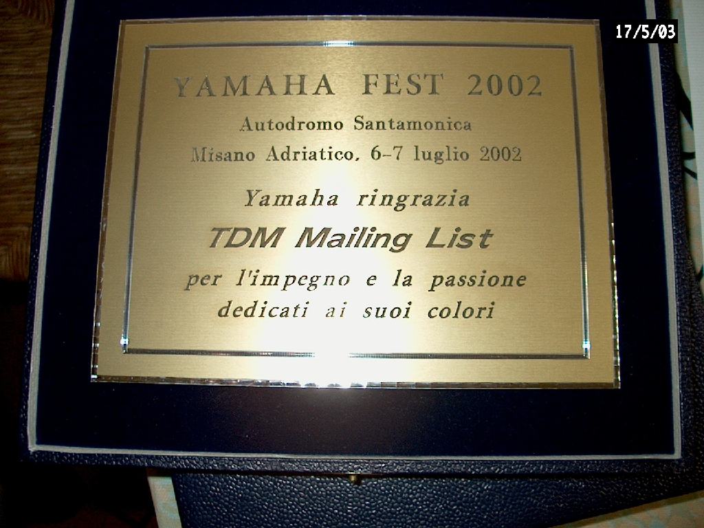 La targa di mamma Yamaha per il Fest 2002...meglio tardi che mai