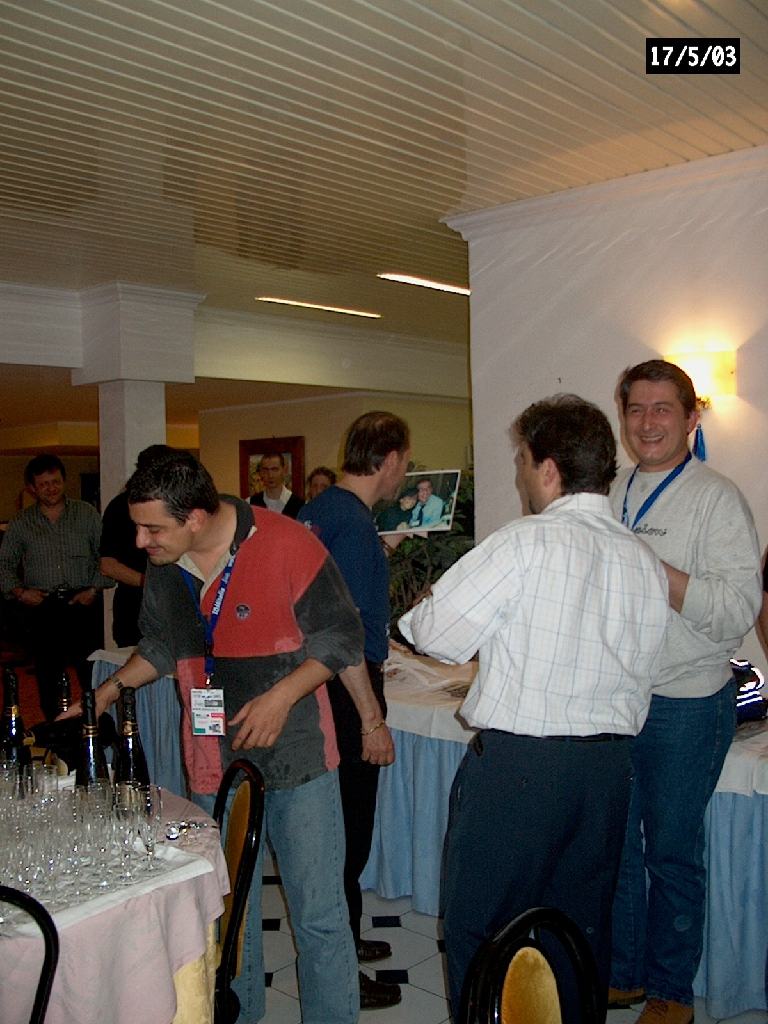 Pier Pito bagnato dallo spumante...mentre alle sue spalle si trama sul presidente.
